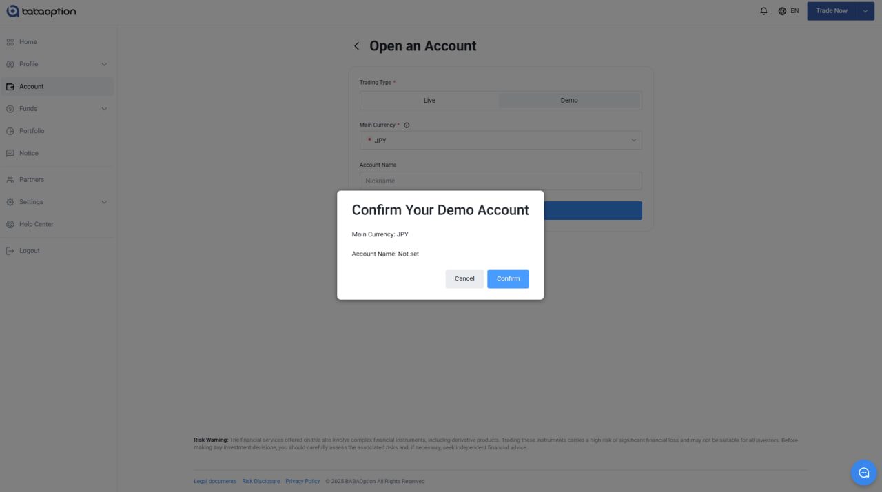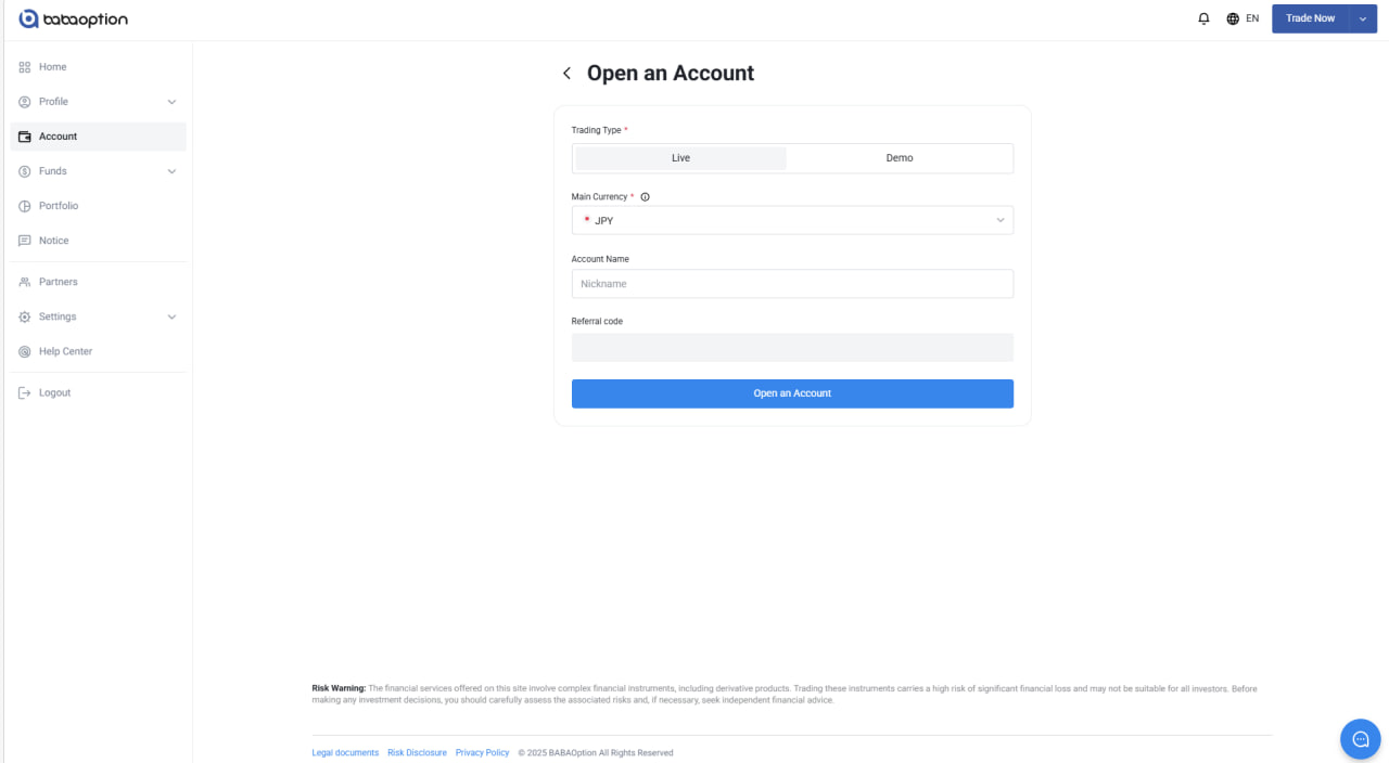 Select “Open an Account.” You must verify your phone number before proceeding if it has not been verified.