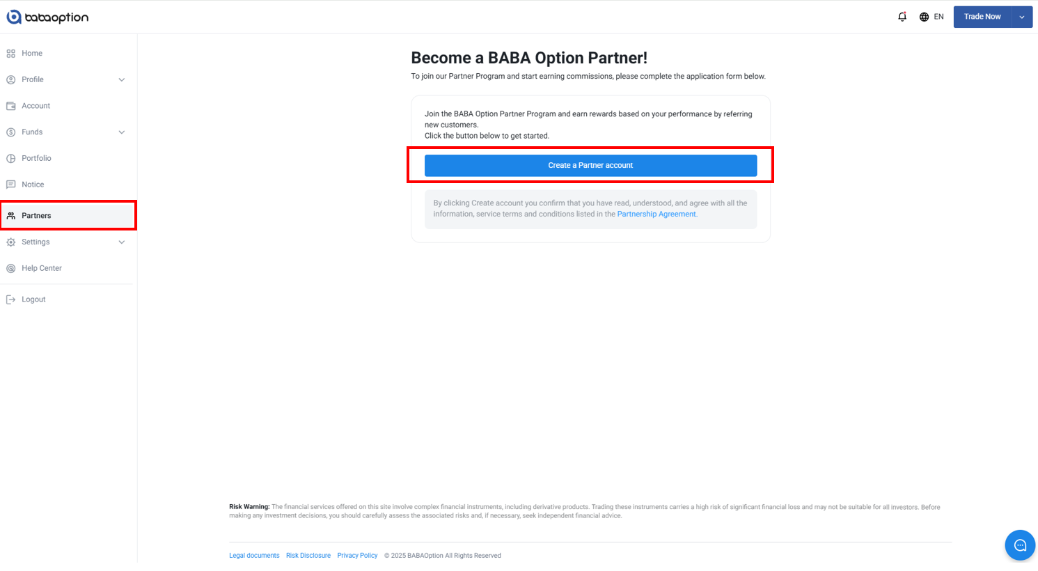 We're excited to have you as a part of our partner network! Whether you're an Introducing Broker(IB) or an Affiliate, joining the BABA Option Partner Program is quick and straightforward.
