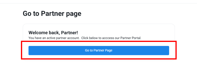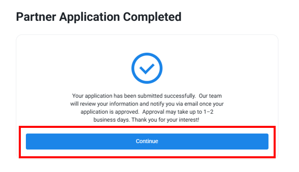 Once registration is finished, you will be automatically redirected to the Partner Program sign-up page to continue your application.