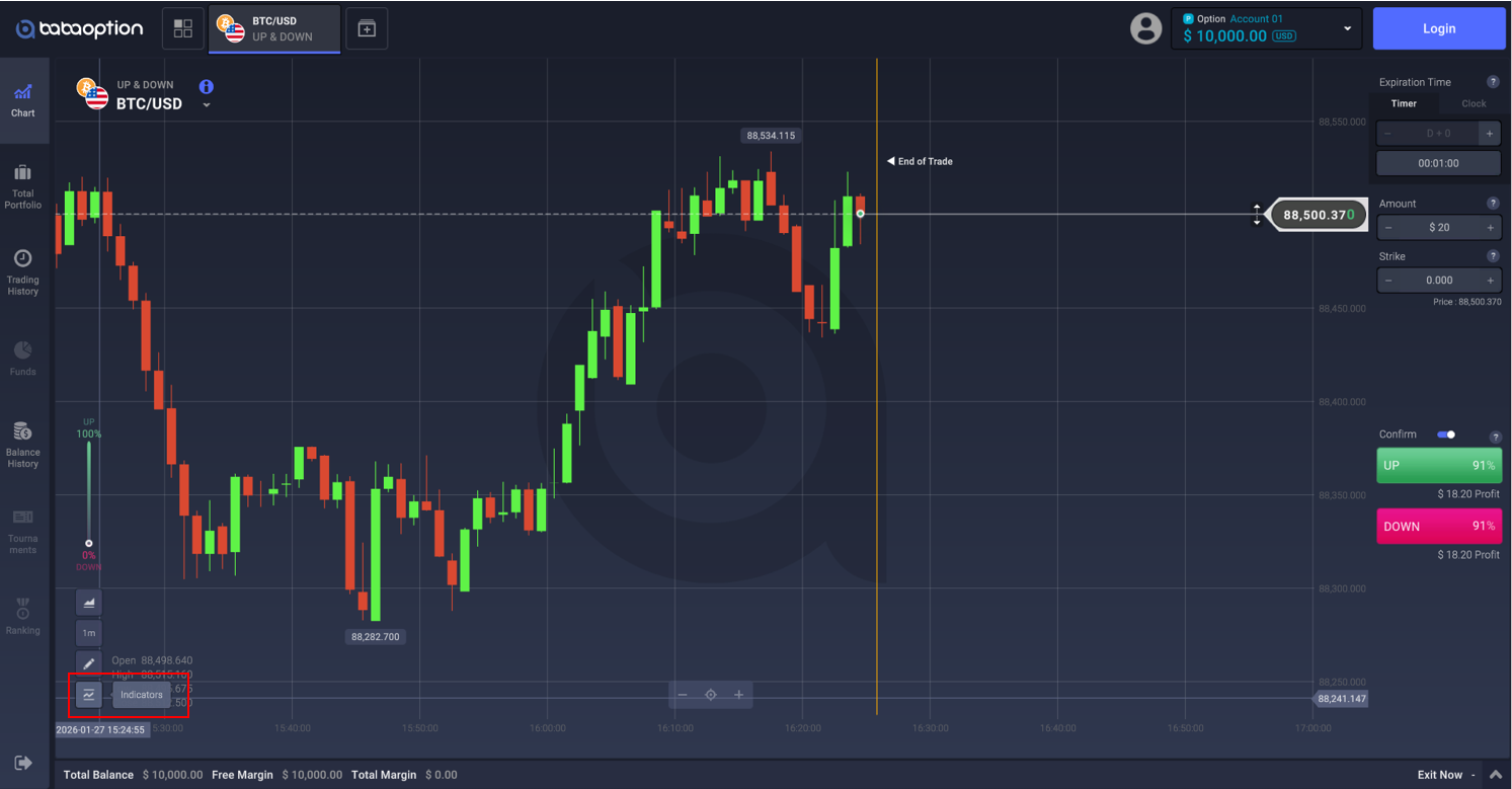 BABA Option allows you to easily add technical indicators to your chart to support better trading decisions.
