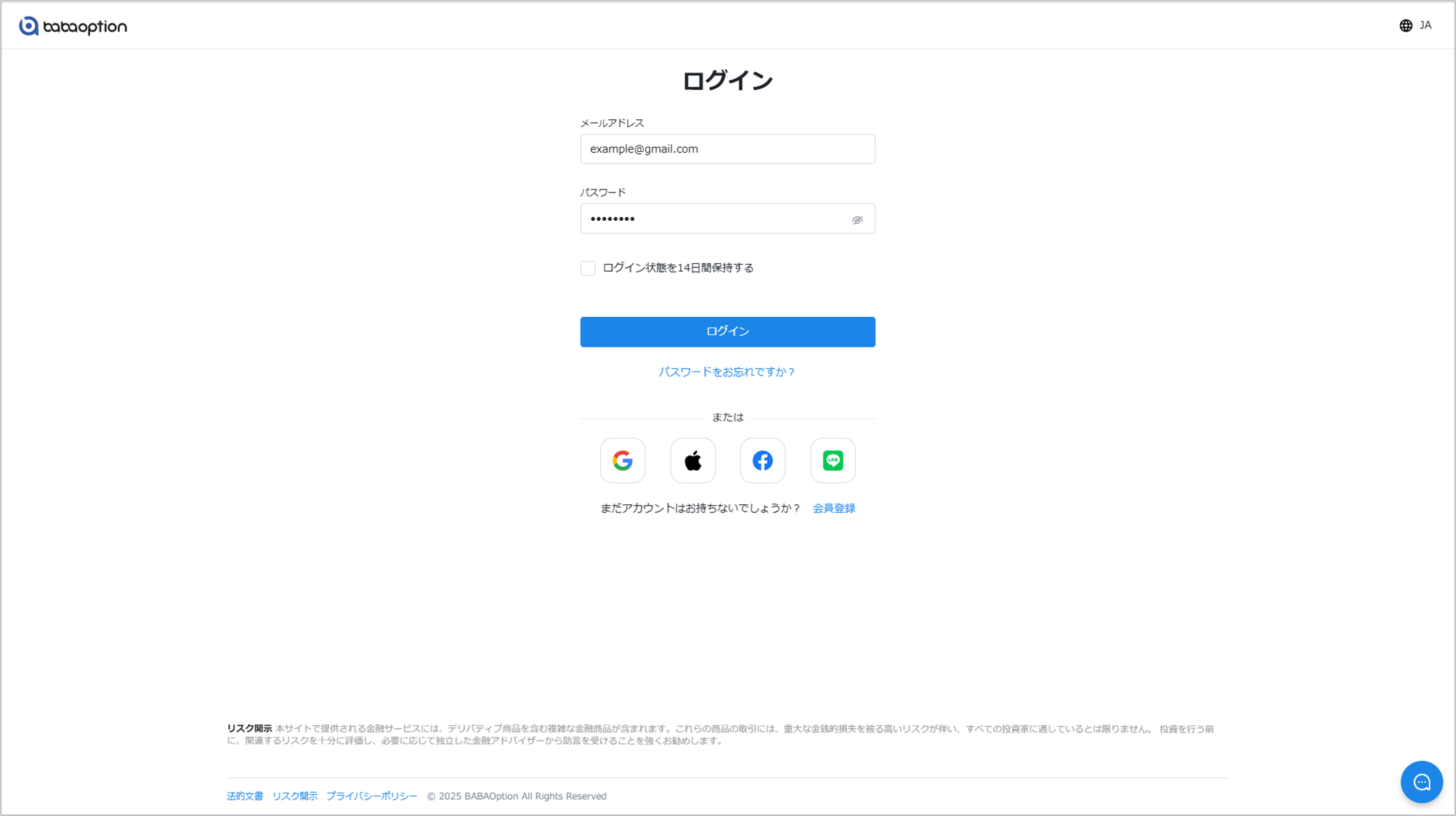 - ブラウザを開き、www.babaoption.comにアクセスします。