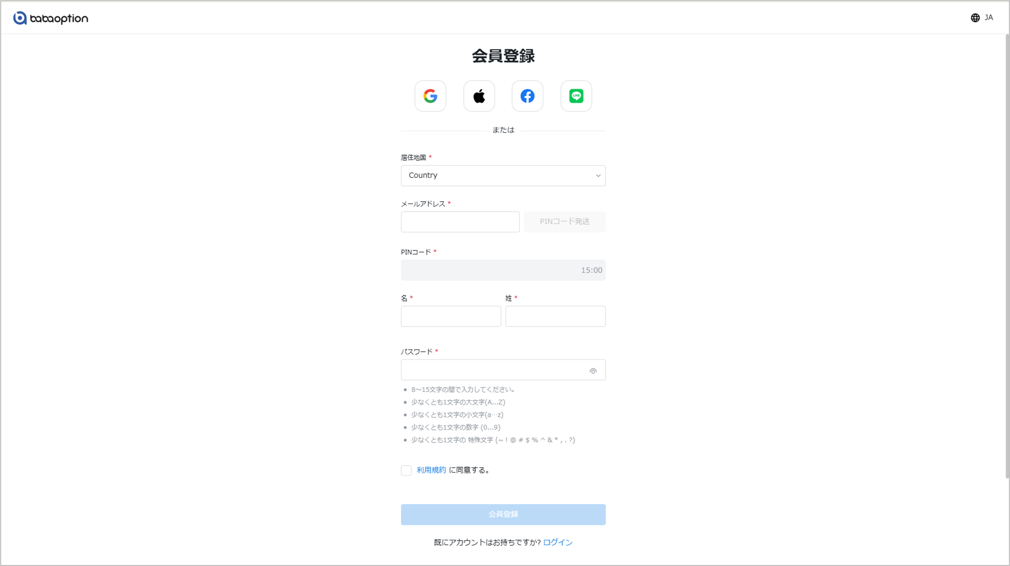 - 居住国:プルダウンリストから現在お住いの国を選択します。